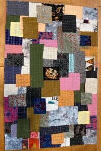If you have leftover “Jelly Roll” strips, use them and cut more 2.5″ wide strips at random lengths from your scraps.Kawandi are an ancestral craft practiced by the African diaspora in western India. They are made from recycled saris and constructed from the outside in. In this workshop we will be practicing a western style of sewing a Kawandi – a respectful interpretation of this traditional technique.