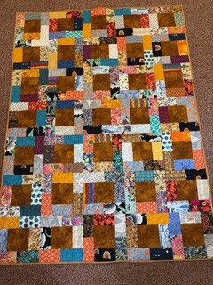 A potato chip in Quilters language means a 2 1/2”x 4 1/2” rectangle. Beginner and scrap friendly these quilts go together easily. And there are many variations for putting the blocks together. Most but not all variations use equal numbers of dark and light chips. As said this is a very scrap friendly quilt but you can always make it a “controlled” scrappy by your choice of fabrics and placement.