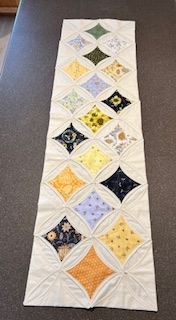 Do you have a collection of orphan blocks and other bits from a workshop or an abandoned project? Are you ready to slice them up and dive into the art of improvisational piecing? We will be using those abandoned bits to explore various improv techniques including ruler free cutting, and create a small piece, a table runner, wall quilt, or panels for a tote bag.